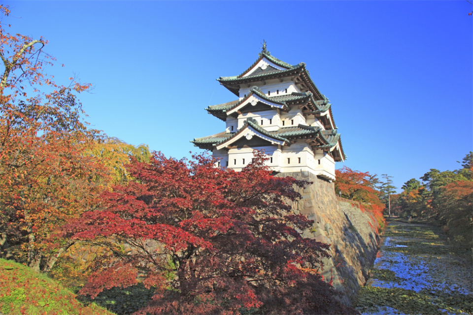 始建于1611年的弘前城天守阁如今依然巍峨屹立于山顶。周围环绕坚固的城墙、深邃的护城河和精巧的角楼,构成了一座易守难攻的堡垒。这是一座承载着日本幕府时代辉煌与沧桑的古城,静静地矗立在弘前市的中心,诉说着四百余年的历史故事。