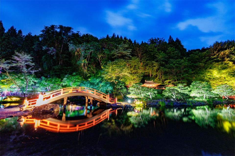 岩手县的平泉因世界文化遗产毛越寺的红叶而闻名遐迩。秋季的毛越寺,被绚烂的红叶所覆盖,成为了赏红叶的绝佳之地。另外,今年还是平泉的中尊寺金色堂建立900年,到 2024年12月31日还可以购买限定纪念御朱印留念。