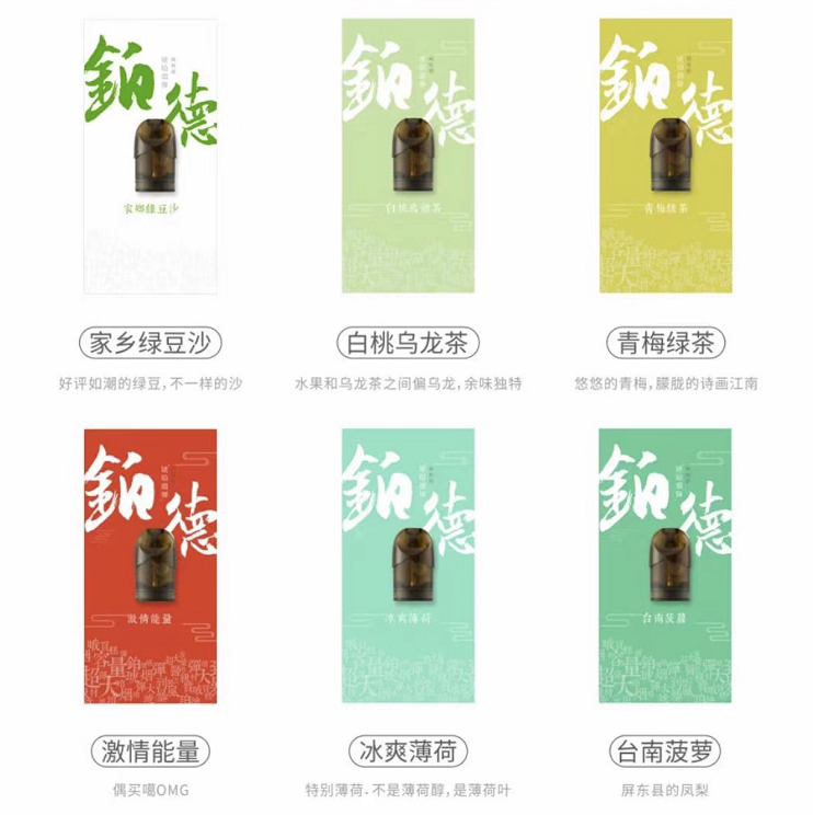 这些饮品在现代社会中依然得以保留。但是随着技术的进步,现代人并不单以饮品的方式享用,比如在电子雾化品牌铂德的烟油里,我们就看到了这几种仿古口味——桂花乌龙、青梅绿茶、白桃乌龙茶、冰霜薄荷、家乡绿豆沙、九龙冻拧茶、荔枝等。