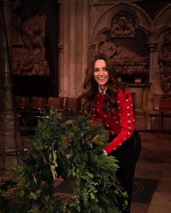元旦、新年、情人节各种节日连轴转,最应景的单品当属红色毛衣。就连凯特王妃都忍不住在圣诞走起了甜美路线,有小圆领装饰的红色毛衣上面点缀着小碎花,节日季的凯特王妃是粉扑扑的。