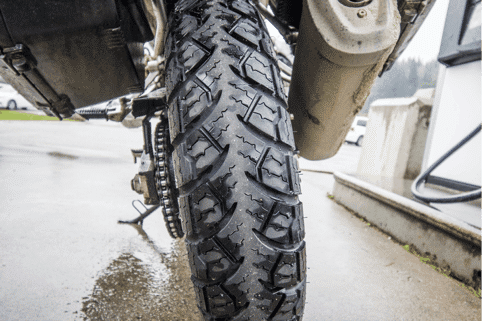 而这条胎虽然不是主打运动性能,但是像V-Strom 1000这种多功能车,即使压到脚踏冒火星也离满胎还有一大段距离,所以如果是在干冷的天气也是可以多给一点油不用担心轮胎倾角不够用,当然还是鼓励大家骑车稳当一点。
