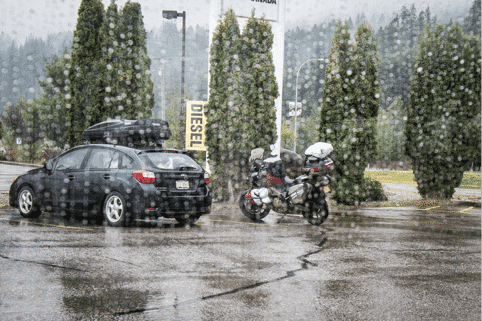 但是不知道是老天可怜我骑得太辛苦还是怎样,在加拿大北段还没换上冬季胎前一路上天气都很好,到了加拿大中段后一换上冬季胎进入冰原大道后就一路狂风暴雨,每天都是在摄氏约五度的气温下骑车,冬季胎在这时候完全发挥了效用。